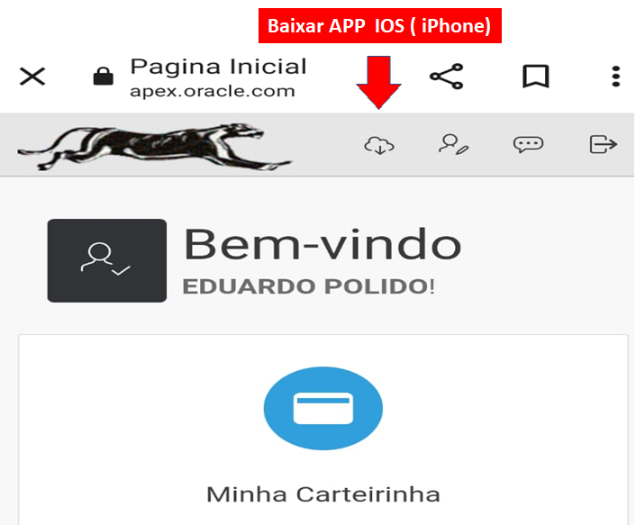 IPHONE IOS - Entre no site www.clubecaxingui.com.br com seu Smartphone em FAZER LOGIN digite sua senha e login, em seguida clique na nuvem.